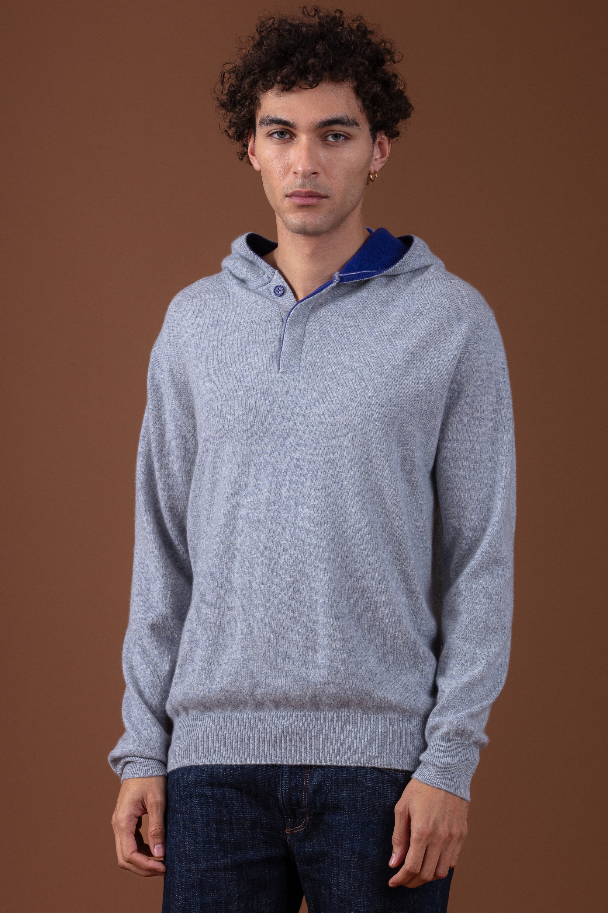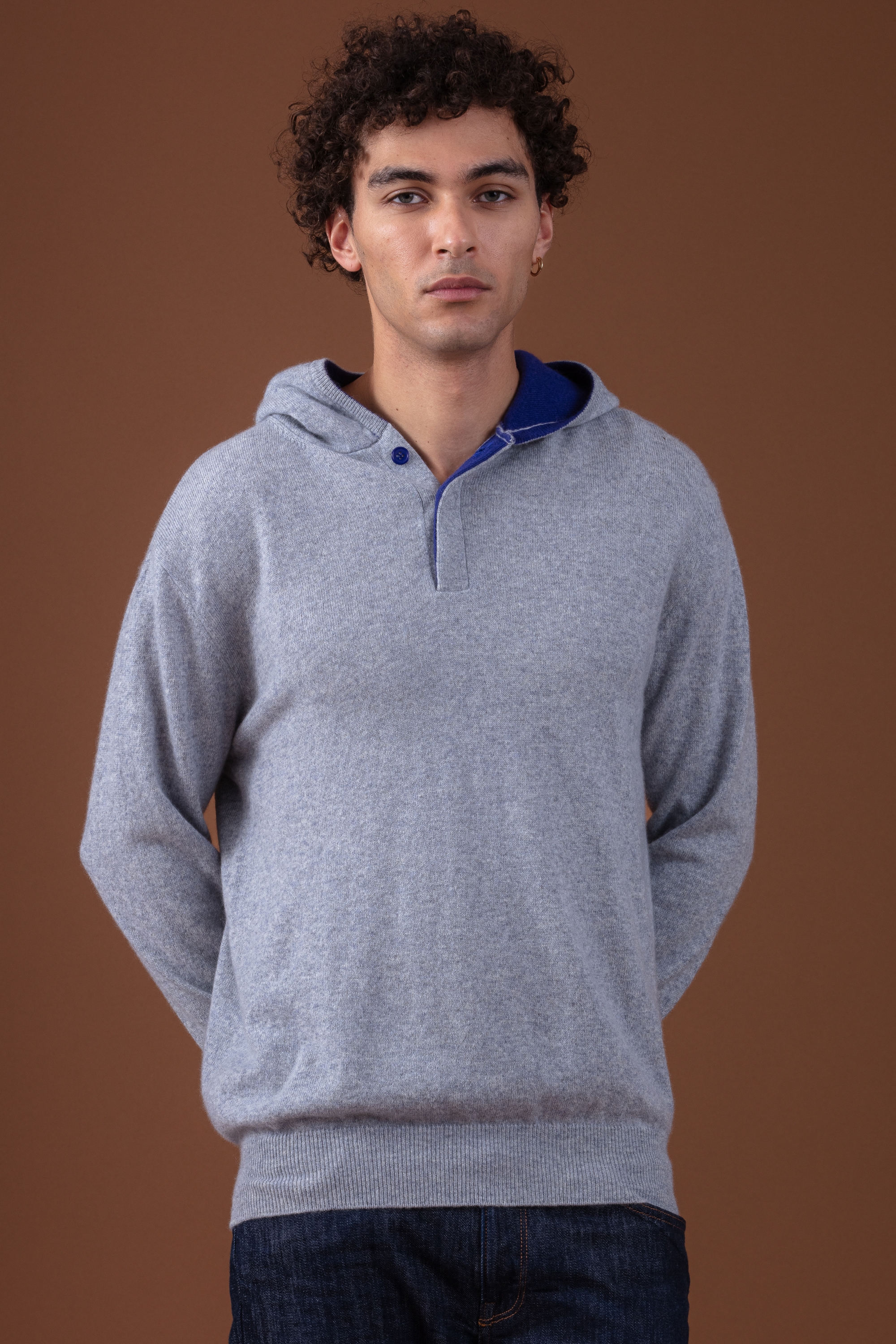 Ce pull cachemire se distingue par son intérieur de capuche en couleur contrastée, apportant une touche graphique et tendance, ainsi qu’une patte de boutonnage recouverte pour un détail soigné et discret. Les finitions en côtes 1x1 de 7 cm sur le bas des manches et le bas du pull garantissent maintien et confort.